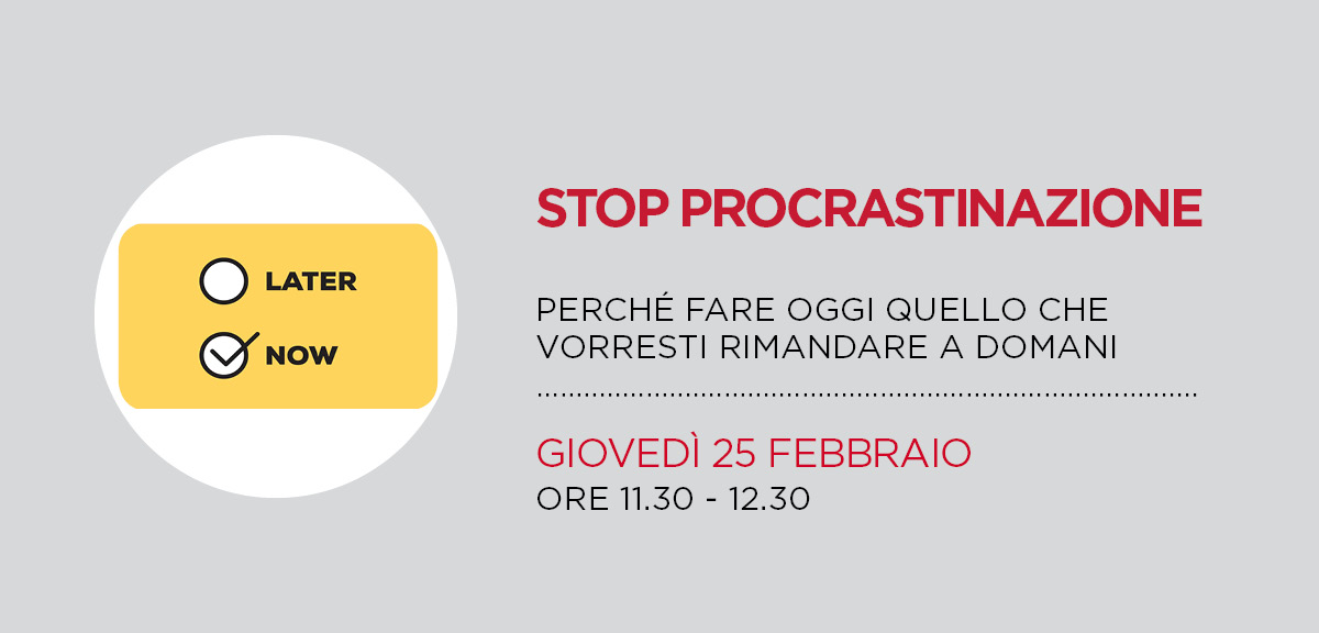3 cose da fare oggi per sconfiggere l’abitudine di rimandare attività al giorno dopo! 3 cose da fare oggi per sconfiggere l’abitudine di rimandare attività al giorno dopo! Apindustria in collaborazione con...