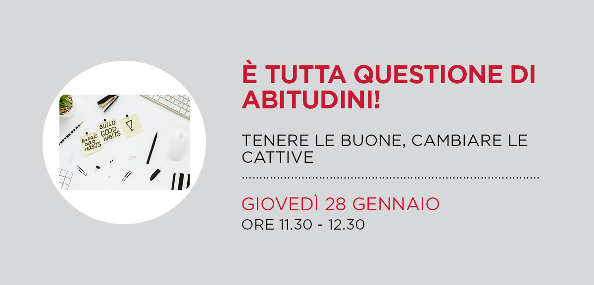 Sapete come funzionano leSapete come funzionano leabitudini?E soprattutto riuscite a riconoscerele vostre buone abitudini e quellecattive?Apindustria in collaborazione conOrganizzatessen organizza un corsoche...